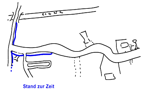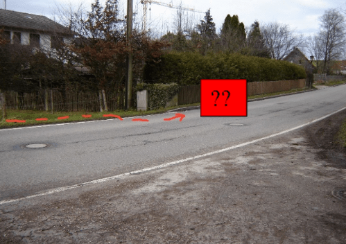 - Eine Drainage vor dem Ortsteil Wendelstein verhindert angeblich die notwendige Verbreiterung der Straße, damit dort ein durch Trennlinie angedeuteter Radweg als Fortsetzung in den Ort untergebracht werden könnte, obwohl genug Platz ohne neuen Grundstücksankauf vorhanden wäre. Hier sollte eine entsprechende Änderung überlegt werden (wäre der verbleibende Drainagebereich nicht trotzdem breit genug?).