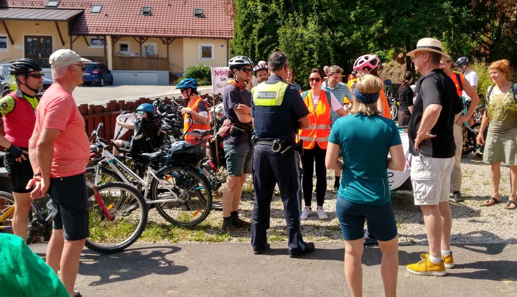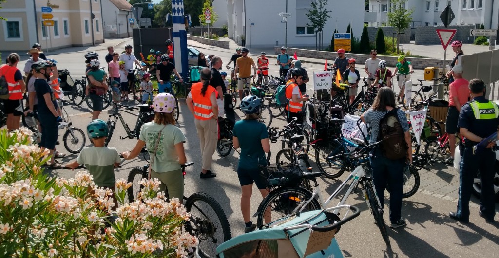 Wie bereits angekündigt, fand am 6. Juli 2025 die Demo für einen Radweg zum Waldkindergarten und nach Jetzendorf als „sich fortbewegende Versammlung“ unter dem Schutz von 4 Polizeifahrzeugen statt. Neben der Leitung des Waldkindergartens nahmen auch Bürgermeister Marcel Fath und etwa 50 besorgte Bürger mit vielen Kindern an der Radltour von Petershausen nach Jetzendorf teil. Nach einem kurzen Stopp an der Einfahrt zum Waldkindergarten gelangten die radelnden Teilnehmer zum Biergarten der Postwirtschaft , wo sich noch eine weitere Reihe interessanter Gespräche und Ansprachen ergaben, auch mit Teilnahme der Bürgermeister Endres und Fath.