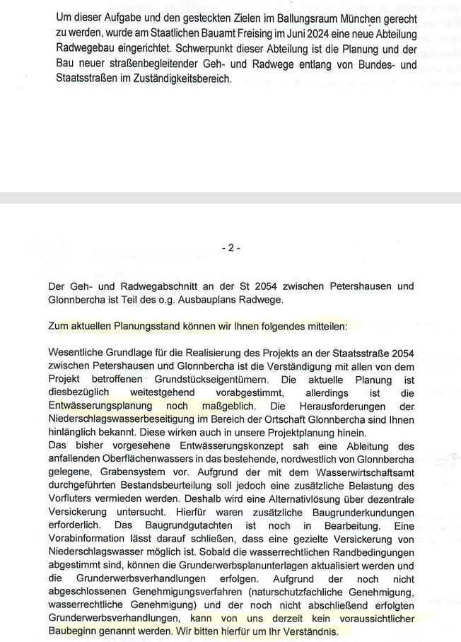 Gehweges von Petershausen nach Glonnbercha!! Baubeginn bis spätesten 2026!!! Bei der